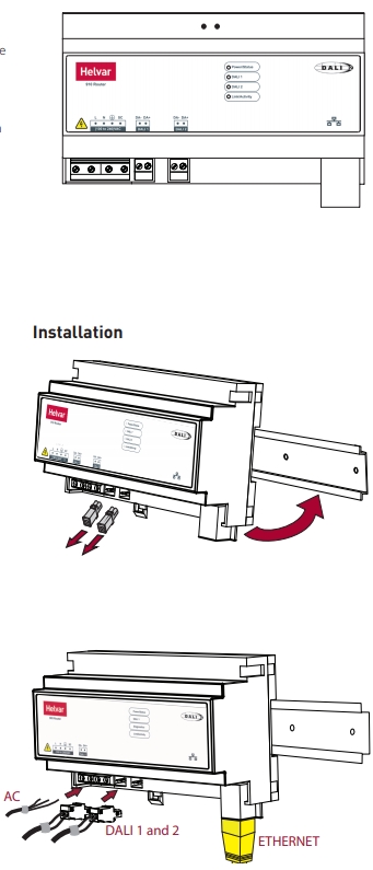 Маршрутизатор 905 использует соединение Ethernet (10/100 Мбит / с) для управления локальной сетью DALI. Базовая функциональность доступна из коробки без какого-либо программирования. Программное обеспечение Helvar Designer обеспечивает расширенную настройку и функциональное программирование маршрутизатора.