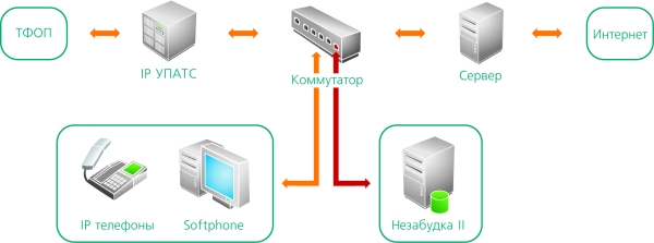 Программный модуль устанавливается в составе ПО сервера записи системы «Незабудка II». Сервер записи подключается к сети IP-телефонии через интерфейс Ethernet 10/100/1000, производит звукозапись фонограмм разговоров и их регистрацию в базе данных системы с указанием всей сопроводительной информации о соединении: дата и время разговора, направление вызова, номера абонентов и т.д.